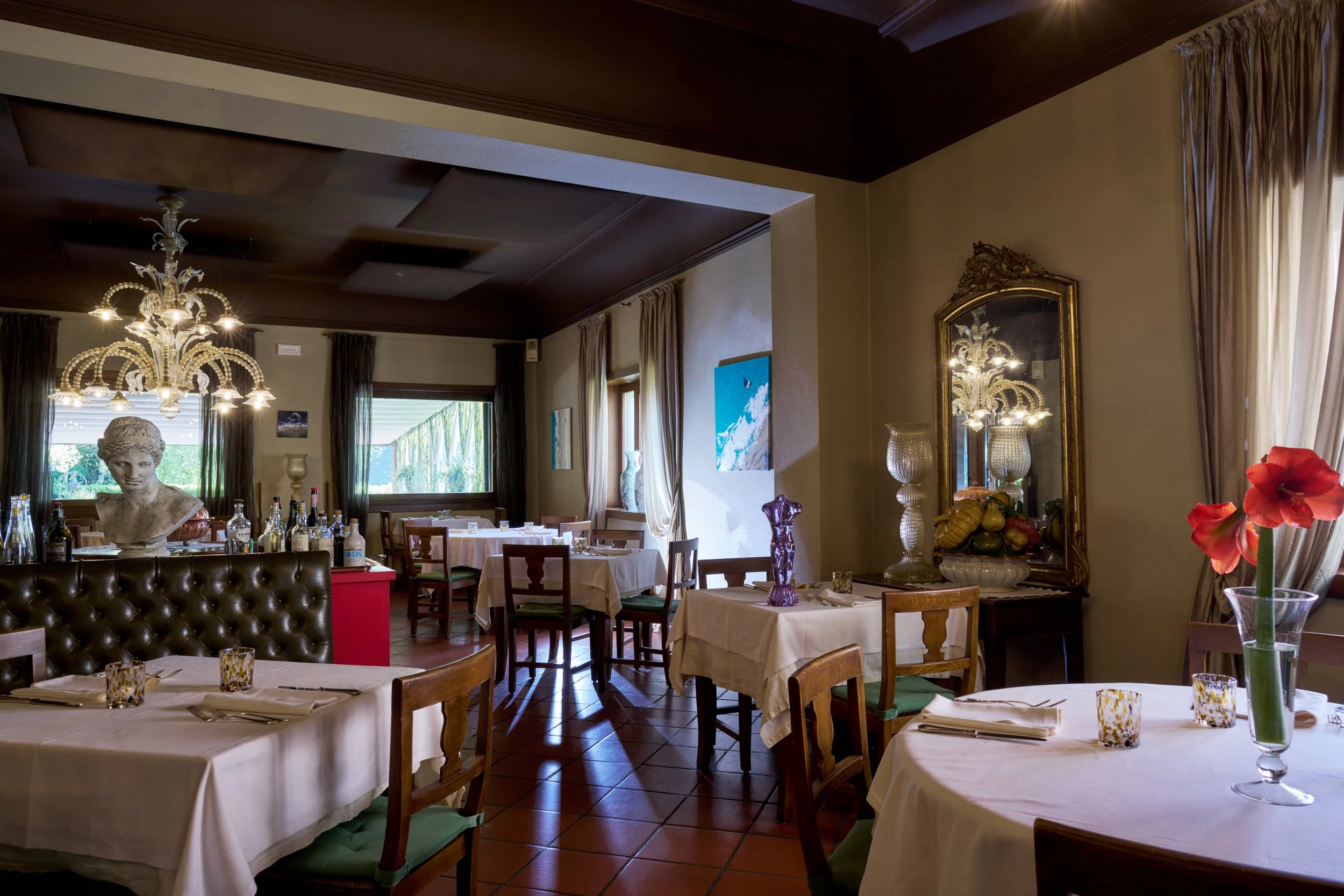 Gli ambienti interni sono caratterizzati da sale accoglienti e arredate con gusto classico, ideali sia per pranzi informali che per cene più riservate. Durante la bella stagione, gli ospiti possono usufruire anche degli spazi esterni, che offrono un’atmosfera piacevole e rilassata, particolarmente apprezzata da chi visita la zona del Garda.